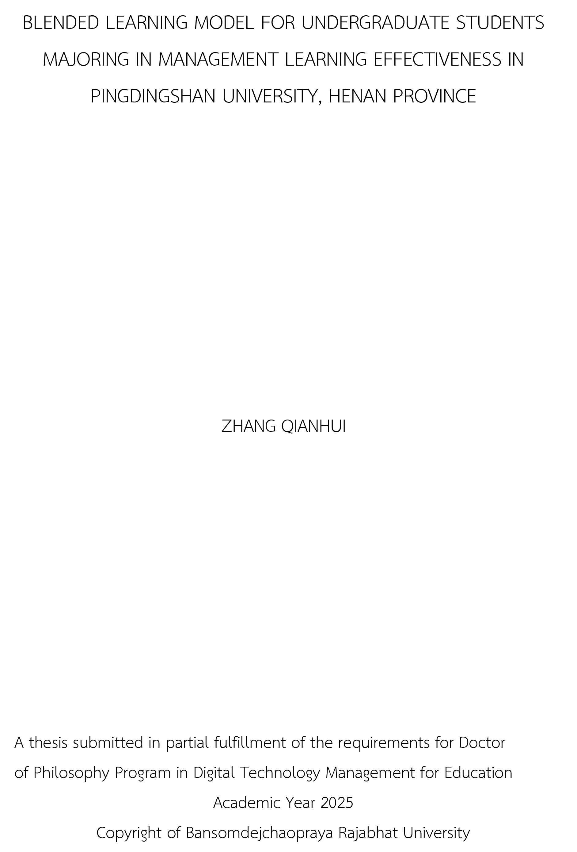 Blended Learning Model for Undergraduate Students Majoring In Management Learning Effectiveness In Pingdingshan University