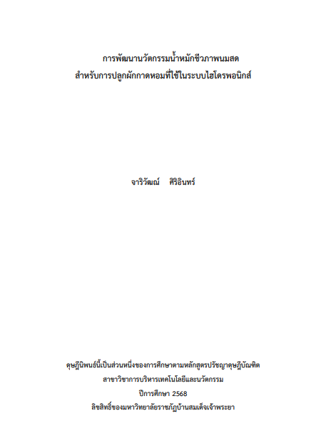 การพัฒนานวัตกรรมน้ำหมักชีวภาพนมสด สำหรับการปลูกผักกาดหอมที่ใช้ในระบบไฮโดรพอนิกส์