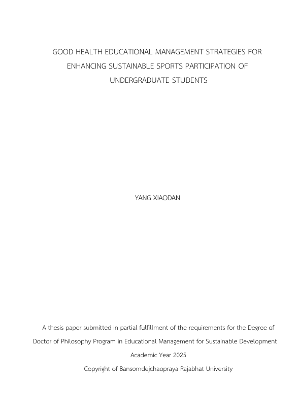 Good Health Educational Management Strategies for Enhancing Sustainable Sports Participation of Undergraduate Students